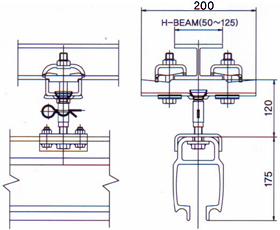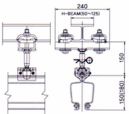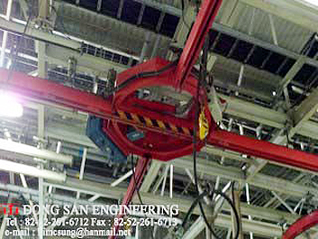 | 더블거더 크레인은 두개의 거더 사이에 호이스트를 설치하기 떄문에 싱 글거더 크레인보다 더 높은 양정거릴를 가질 수 있다. 수동으로 쉽게 움 직일 수 있으나 6M이상의 스판으로 정격하중 500kg이상인 경우에는 아래그림과 같은 DRIVE UNIT를 사용하여 전동으로 움직일 수 있다. | ||||