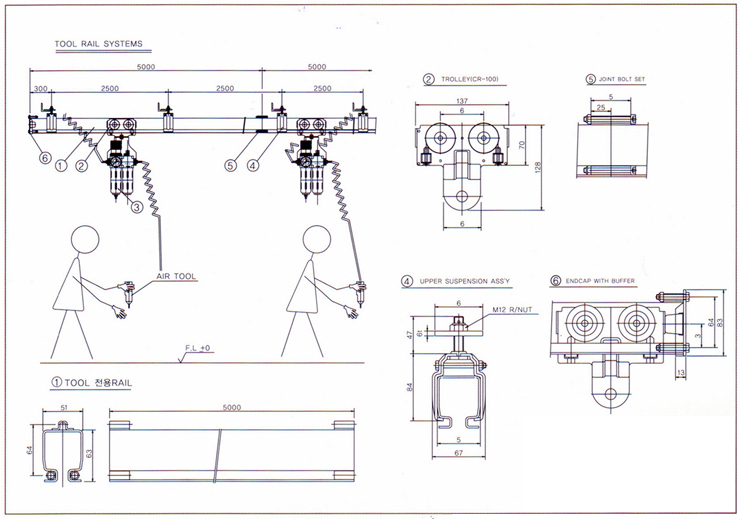 | 5.0 | 6 | ll-T | 700 | 싱글 거더 크레인은 천정 철구조물에 간단히 조립하여 사용 할 수 있으므로 별도로 주행용 레일이 필요치 않다. 가벼운 레일과 마찰력이 거의 없는 트로리를 사용하여 무거 운 물건도 수동으로 쉽고 빠르게 이송 시킬 수 있다. |
